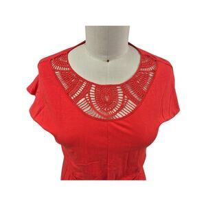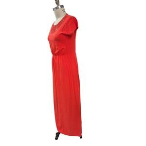 Lands End Cotton Blend Maxi Dress Red/Orange Sz M Summer Chic