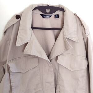 Land's End Khaki Beige Cream Cotton Blend Utility Jacket Chore Barn Plus Size 2X Casual Spring Fall Button Down Pockets Minimalist