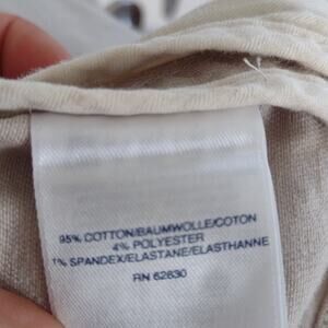 Pre-owned condition, has some faint discoloration on the right sleeve and back. Also, one of the buttons on the left cuff is broken in half.