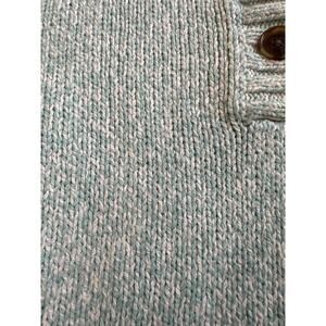 Land's End Cotton Chunky Knit Sweater Large Fold Over Collar w Buttons Teal Sz M