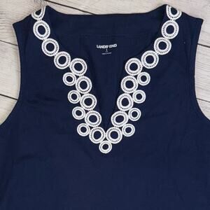 Lands' End Cotton Sleeveless Shift Dress in Navy Blue and White Size Small 4-6