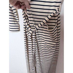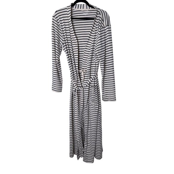 Lands End Cotton Striped Belted Robe L Beige & Navy Lounge