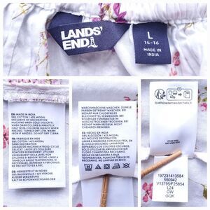 Lands End Cotton Voile Top Size L White Floral Short Puff Sleeve Cottage Prairie