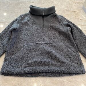 Lands’ End Bouclé Teddy Fleece Pullover | Charcoal Grey | Petite Medium
