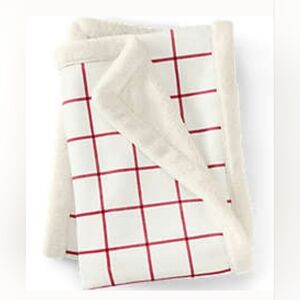 Land's End Cozy Red and White Windowpane Sherpa Fleece Throw Blanket NWT 50X70