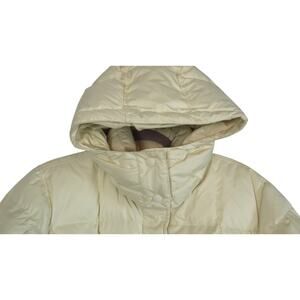 Size medium petite. Pit to pit: 21.5", Length 39". BEAUTIFUL, rich cream color. Ultra warm! Lands End Cream Long Puffer Coat Jacket Quilted Goose Down Feathers Hooded M P