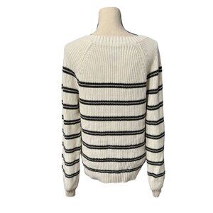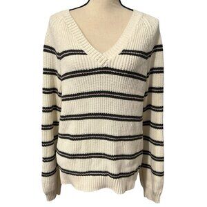 Lands' End Cream, Pink & Green Striped V-Neck Sweater Size S