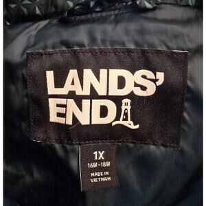 * Lands' End DOWN PUFFER VEST SZ 1X (16W-18W) PRINT 600 FILL NAVY BLACK TURQ