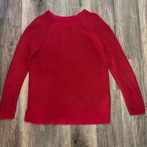 This sweater is made by Lands’ End. It’s a darker pink color, ribbed and has slits at the waist line. Size medium and in very nice pre owned condition. Smoke and pet free home.