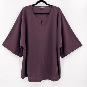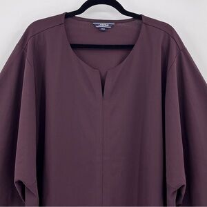 Lands’ End Dark Plum Split V-neck Oversized Blouse Top 3X