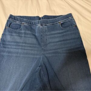 Deep blue denim pants by Lands' End. Elastic waste band. New w/o tags. Length is 32”