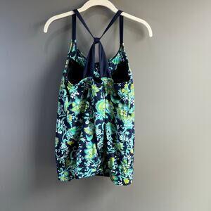 Lands’ End Deep Sea Floral Blouson Tankini Swim Size 10 DDD