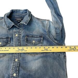Lands End Denim Dress 14 Petite Long Sleeve Snap Preppy Classic Knee Length Blue