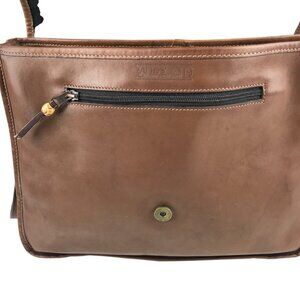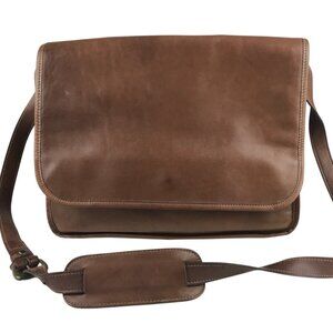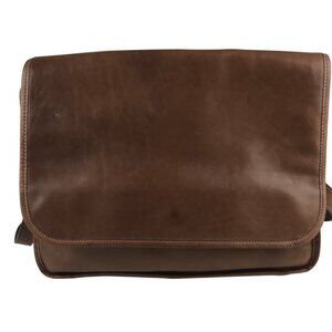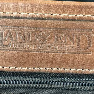 Land's End Direct Merchant Messenger Bag Genuine Leather Zip Pocket Strap Brown