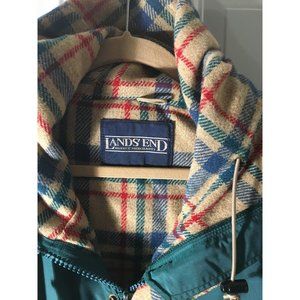 Lands End Direct Merchant green with plaid interior zip front hooded jacket