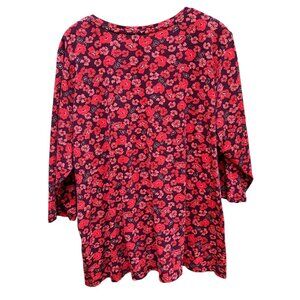 Lands End Ditsy Floral Red & Purple 3/4 Sleeve Tunic Top Spring 2X 20W-22W