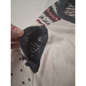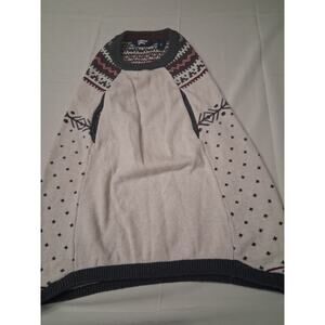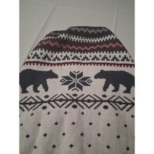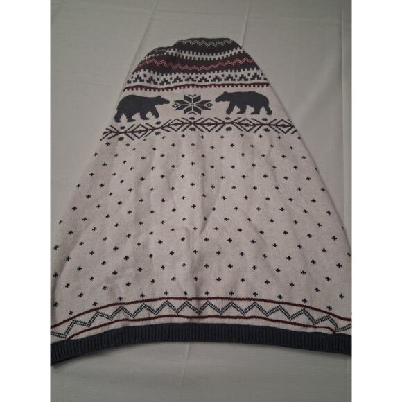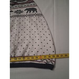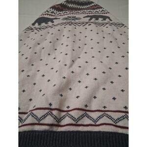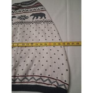 Lands' End Dog Family Holiday Sweater in Cream, Size XL, is a festive and warm sweater designed specifically for your dog this holiday season. Made of cozy cotton material, this sweater features a Christmas theme with a beige color and adorable bear accents. It is a perfect winter apparel for your furry friend to keep them comfortable and stylish during the festive season.