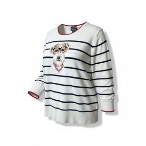 Lands End Dog Picture Sweater Women Small 100% Supima Cotton Blue 3/4 Sleeve