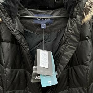 Lands End Womens XL / Tall Gray Black Down Insulated Long Faux Fur Trim Hood Parka Coat NWT