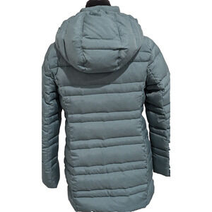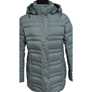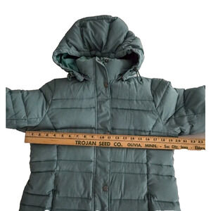Land's End Down Puffer Jacket Mid Length Hooded Women's Small Green
