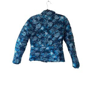 Lands End Down Puffer Jacket Women Size XS 2-4 Blue Floral Warm Winter Coat