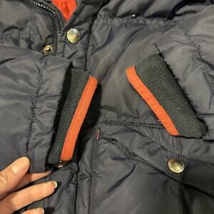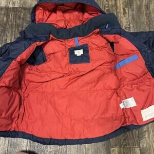 Lands End Down Puffer Parka Boys Navy Blue Red Soft Fleece Sz 5-6 Coat Winter