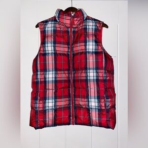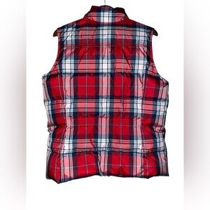 Lands' End Down Puffer Red Plaid Vest Women L Hiking Walking Trails Gorpcore