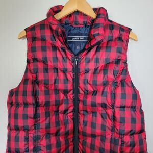 Lands End Down Puffer Vest Buffalo Plaid Red Gingham Check Sz L Gorpcore Layer