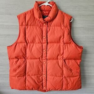 Lands End Down Puffer Vest Snap Orange Womens Size XL 18-20 Outerwear Gorpcore