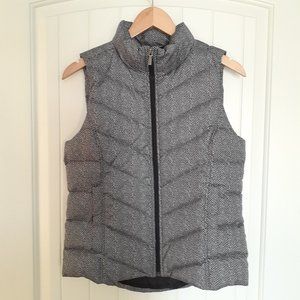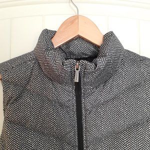Lands' End Down Quilted Puffer Vest Black & White Herringbone Size XS