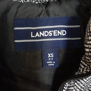 Very good pre-owned condition. Lands' End Down Quilted Puffer Vest. Size Extra Small (size 2-4). Color: Black & White Herringbone.