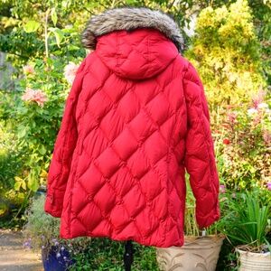 Land’s End Down-filled Expedition Red puffer Jacket w/faux-fur insulated hood