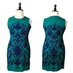 Lands End Dress Ponte Knit Sheath Pockets Sleeveless Green Blue Women’s Size 16P