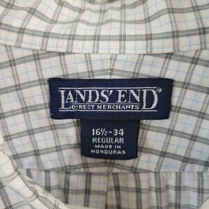 Lands' End Dress Shirt 16 1/2 X 34 Cotton plaid business Casual pocket Office