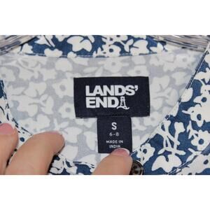 Lands' End Dress Small 6-8 Womens Short Sleeve Button Front Tie Waist