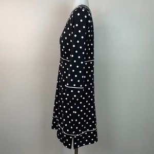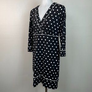 Lands' End Dress Small Black White Polka Dot Nylon Stretch Jersey Surplice Neck