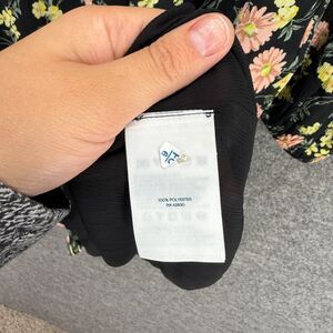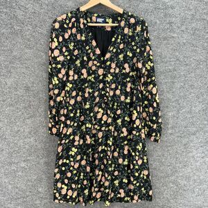 Lands' End Dress Women 2P Petite Black Floral Shift Short V-Neck Long Sleeve