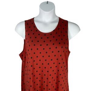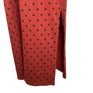 Lands End Dress Women Large 14/16 Burgundy Polka Dot Maxi Side Slit Hand Pockets