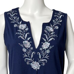 Lands End Dress Women Medium Blue Jersey Knit Floral Embroider Casual Athleisure