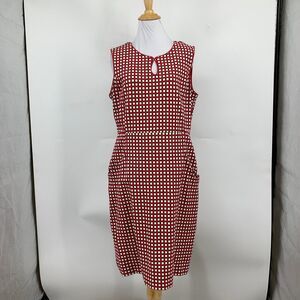 Lands End Dress Womens 12 Polka Dot Sleeveless Keyhole Sheath Pockets Back Zip