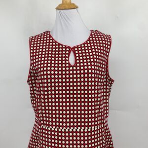 LANDS END DRESS WOMENS 12 POLKA DOT SLEEVELESS KEYHOLE SHEATH POCKETS BACK ZIP