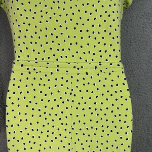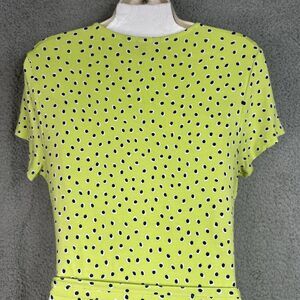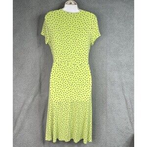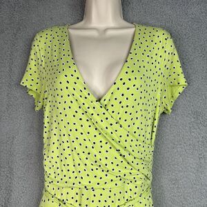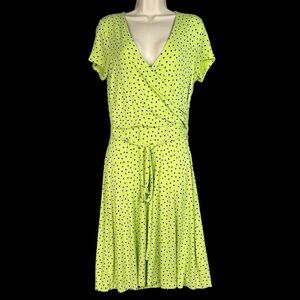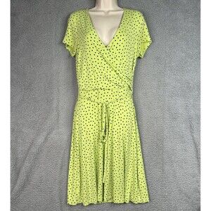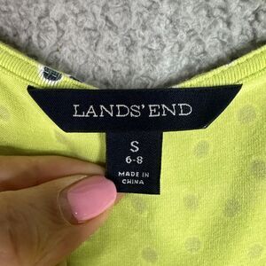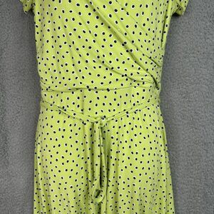 Lands End Dress Womens Jersey Knit Small 6-8 Surplice Faux Wrap Green Polka Dots