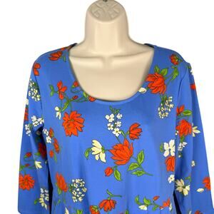 Lands End Dress Womens PM 10-12 Blue Floral Print 3/4 Sleeve Cotton Stretch