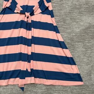 Lands End Dress Womens Petite XL Pink Blue Striped Tie Front Sun Beach Resort
