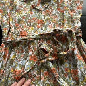 Land's End Dress midi lightweight ruffled collar brown white orange yellow small