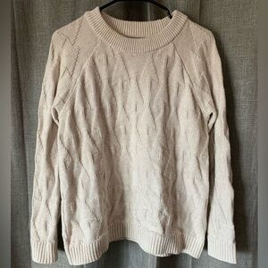 Lands End Drifter Beige Christmas Tree Sweater Women’s XS OVERSIZED
