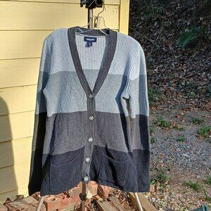 Lands' End Drifter Grey Color Block Cardigan with Pockets & Buttons Sz S/T