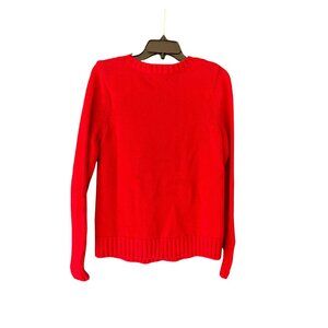 Lands End Drifter Red Cable Knit Sweater S 6-8 100% Cotton Womens Pullover Warm