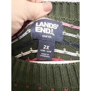 Lands End Drifter Sweater Women's Plus Size 2X Green Dot Boxy Cotton Fisherman