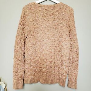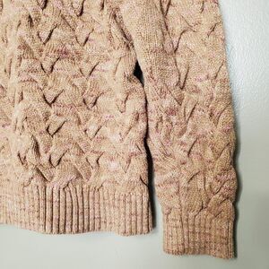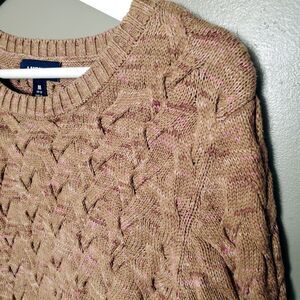 Lands' End Drifter Sweater Womens Size Medium Brown Pink Cotton Braided Knit